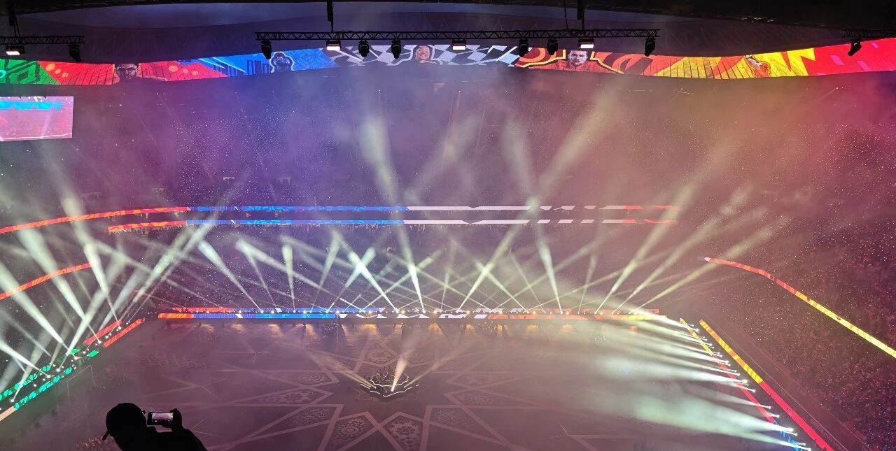 穆莱·阿卜杜拉王子体育场建筑结构复杂,顶部呈非标准圆形,存在多处凹凸弧线,对显示产品的适配性提出极高挑战。面对这一难题,艾比森团队通过创新的钢结构设计,将标准A1025模组精准嵌入异形空间,实现360°无死角环绕覆盖。整套显示系统如光环般贴合体育场穹顶轮廓,既保留了建筑原有的美学特征,又赋予其前所未有的数字生命力。