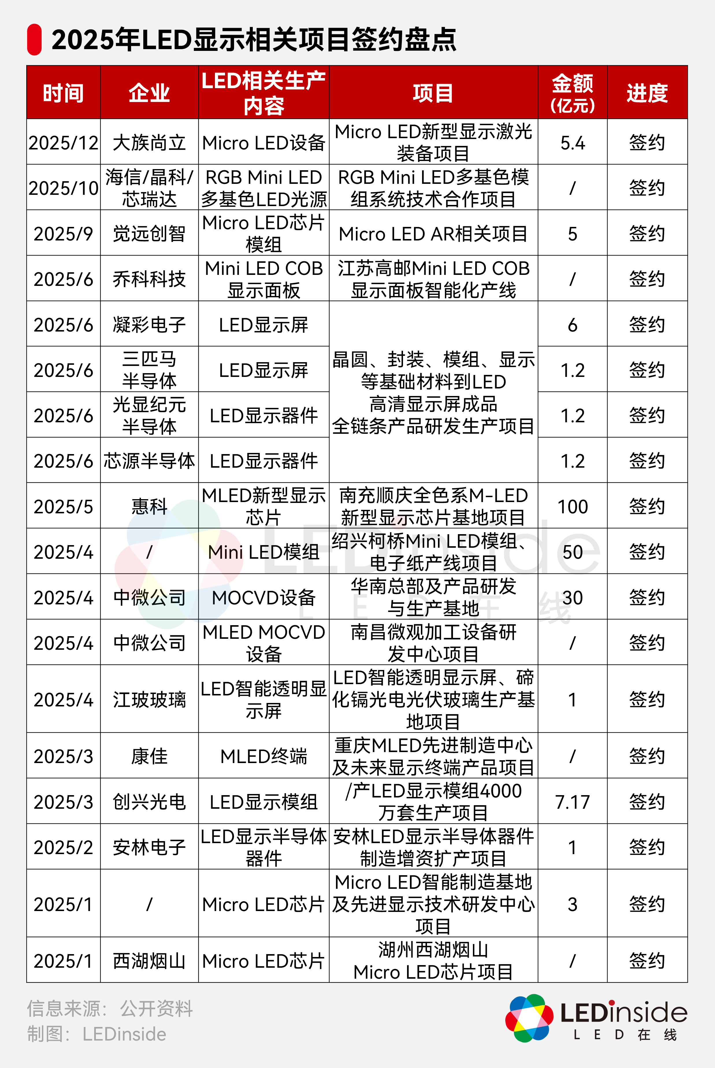 据LEDinside不完全统计,2025年约有23个LED显示相关项目完成签约或立项。