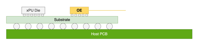 传统的网络连接是把光模组插在设备前面板上,电信号需要在电路板上跑十几厘米甚至更长距离才能到达计算芯片。而CPO则是直接把负责光电转换的光引擎和计算芯片(如GPU或交换芯片)挨着封装在同一块基板上。