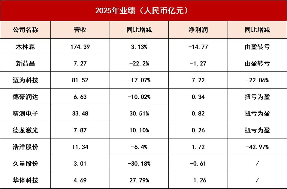 德龙激光2025年实现营业收入7.87亿元,同比增长10.10%;归属于上市公司股东的净利润为2584.79万元,较2024年亏损3450.11万元实现扭亏为盈。