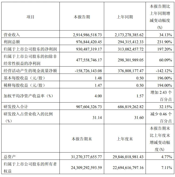 中微公司公布2026年一季报,公司营业收入为29.1亿元,同比上升34.1%;归母净利润为9.3亿元,同比上升197.2%。