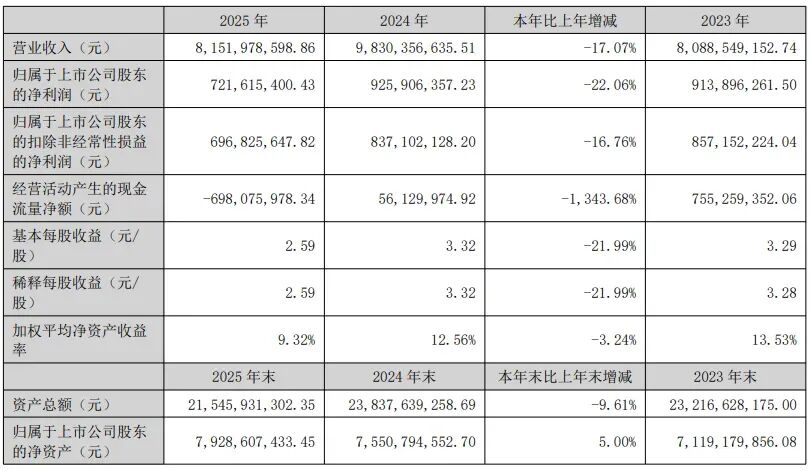 迈为科技2025年实现营业收入81.52亿元,同比下降17.07%;归属于上市公司股东的净利润7.22亿元,同比减少22.06%。