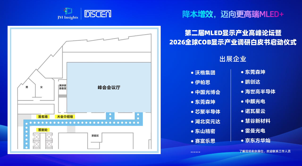 本次论坛以“降本增效,迈向更高端MLED+”为主题,组委会将邀请吸引利亚德、洲明科技、京东方、天马、TCL华星、雷曼光电、南京洛普、卡莱特、沃格光电、元旭半导体、芯聚半导体等产业链领军企业参与。