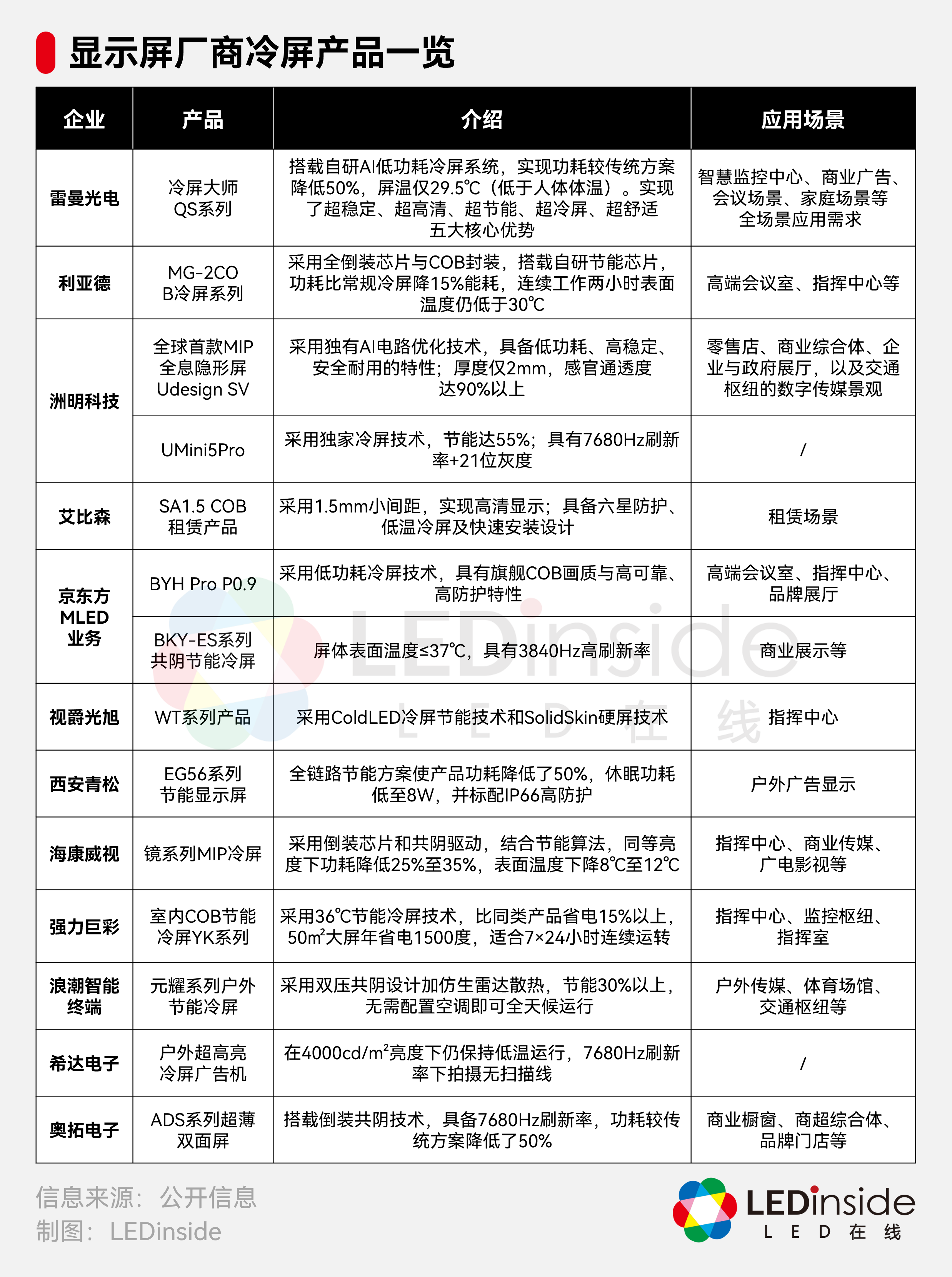从应用场景来看,高端室内仍是主流,例如指挥中心及高端影院场景,冷屏解决了近距离观看的热辐射问题。与此同时,而冷屏技术也正向全场景渗透。