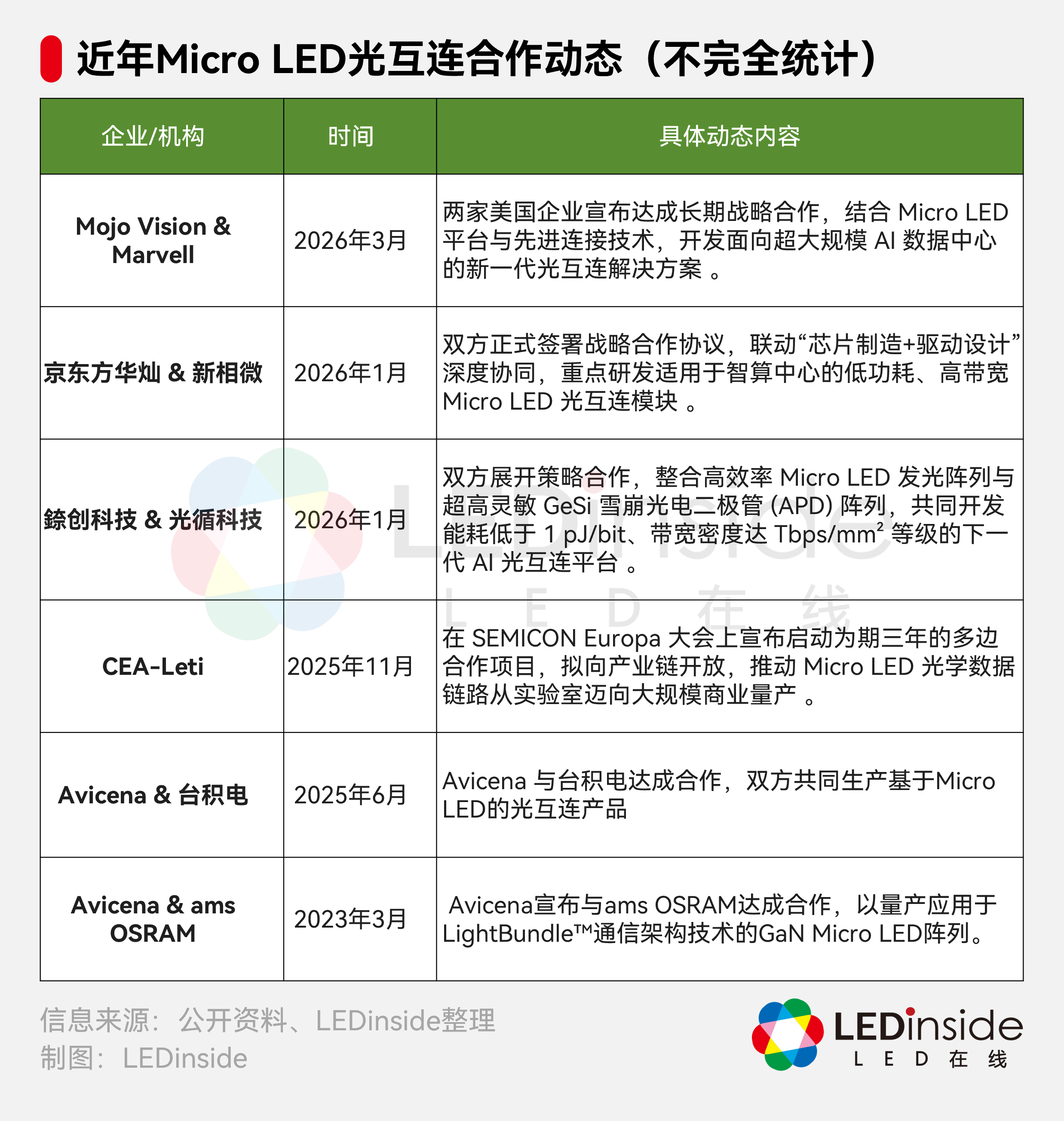 在产业链协同层面,京东方华灿光电与显示芯片设计公司新相微正式签署战略合作协议,研发适用于智算中心的低功耗、高带宽Micro LED光互连模块。