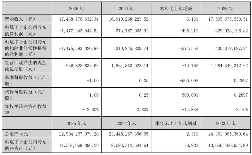 木林森公告2025年实现营业收入174.39亿元,同比增长3.13%;归属于上市公司股东的净利润为-14.77亿元。