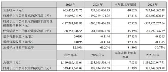 德豪润达2025年年度实现营业收入6.63亿元,同比下降10.02%;归属于上市公司股东的净利润为3409.67万元,同比扭亏为盈。