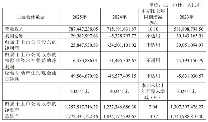 德龙激光2025年实现营业收入7.87亿元,同比增长10.10%;归属于上市公司股东的净利润为2584.79万元,较2024年亏损3450.11万元实现扭亏为盈。