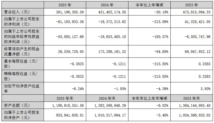 久量股份公布2025年年度报告,报告期内,公司实现营业收入3.01亿元,同比下降30.18%;归属于上市公司股东的净亏损6119.39万元。